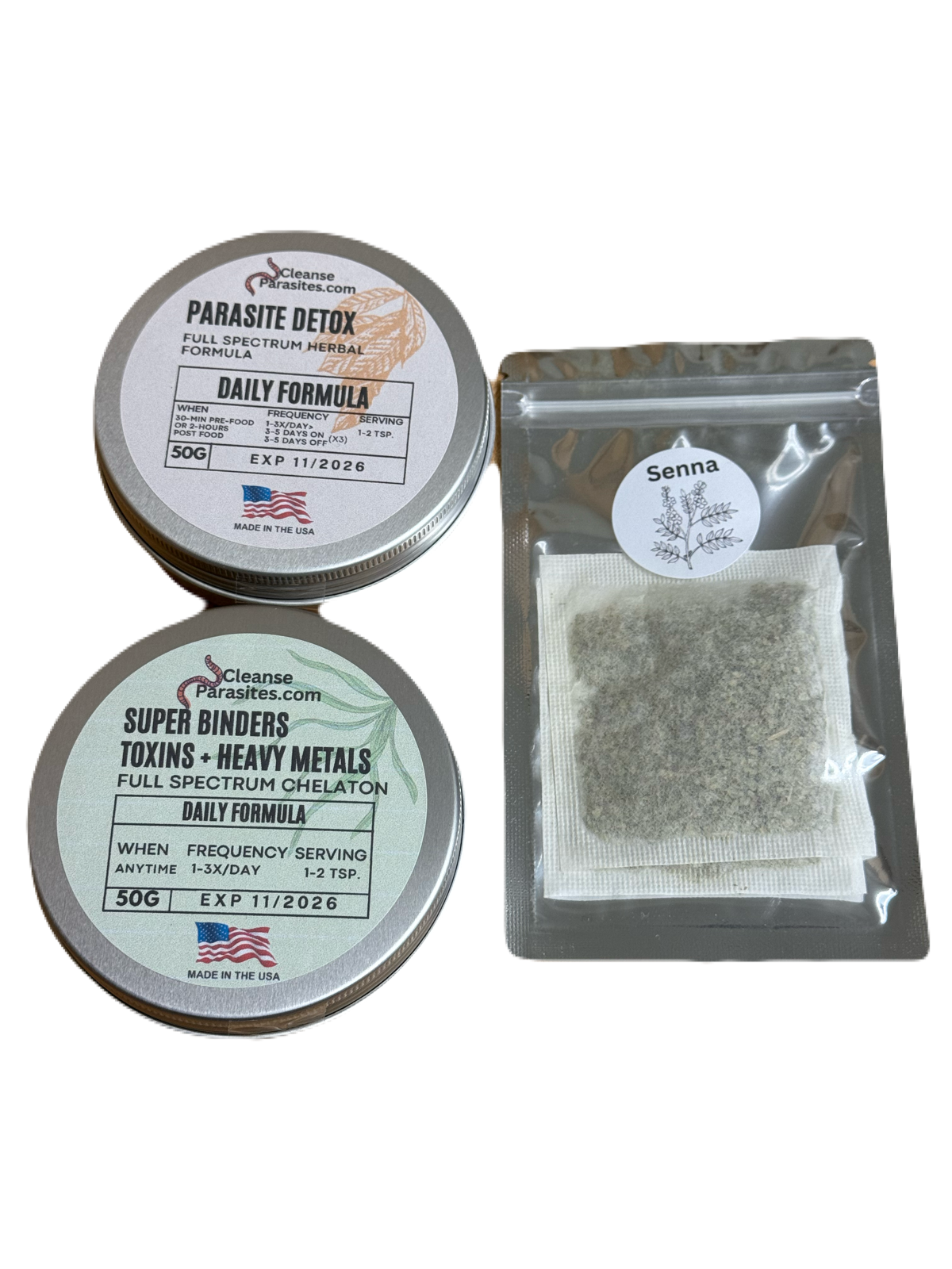(1) Parasite Herbal Powder Cleanse + (1) Heavy Metals Micro-Plastics Cleanse / Binder Herbal Minerals Powder + Senna Laxative Tea (Pre-cleanse)
